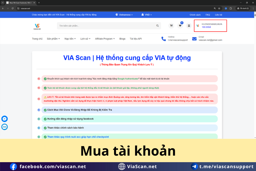 Hiện nay, có rất nhiều anh em cần mua VIA để chạy quảng cáo, seeding hay nhu cầu khác. Tuy nhiên lại không biết cách để mua sao cho nhanh và tiện lợi nhất. Hôm nay VIA Scan xin phép được chia sẻ cách để có thể giao dịch hoàn toàn tự động trong 1 phút. Vô cùng tiện lợi và an toàn tại web bán tài nguyên: Viascan.net