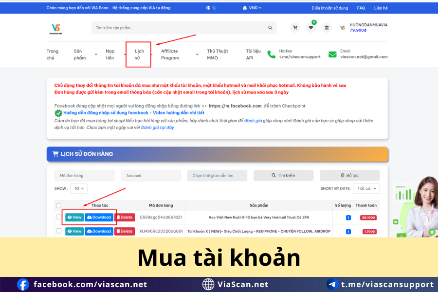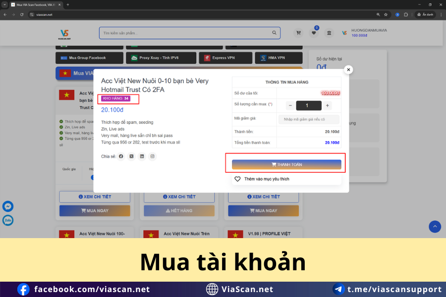 Vậy là bạn đã mua thành công tài khoản tài khoản phù hợp nhu cầu tại viascan.net